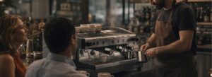 Después de 4 minutos, es hora de “romper taza” (atravesar la capa de café molido húmedo en la superficie de la taza).